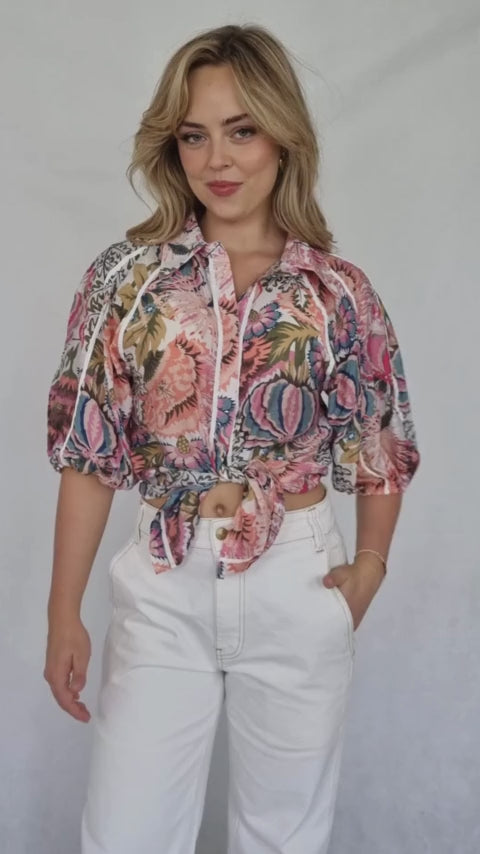 This blouse is a lovely blend of casual and chic. The lightweight fabric and three-quarter sleeves offer comfort and breathability, while the unique blue and white floral print adds a touch of artistic flair. The relaxed fit and button-front closure create a versatile piece that can be dressed up or down, making it a perfect addition to any spring or summer wardrobe. The subtle detailing around the neckline and placket enhances the overall design.