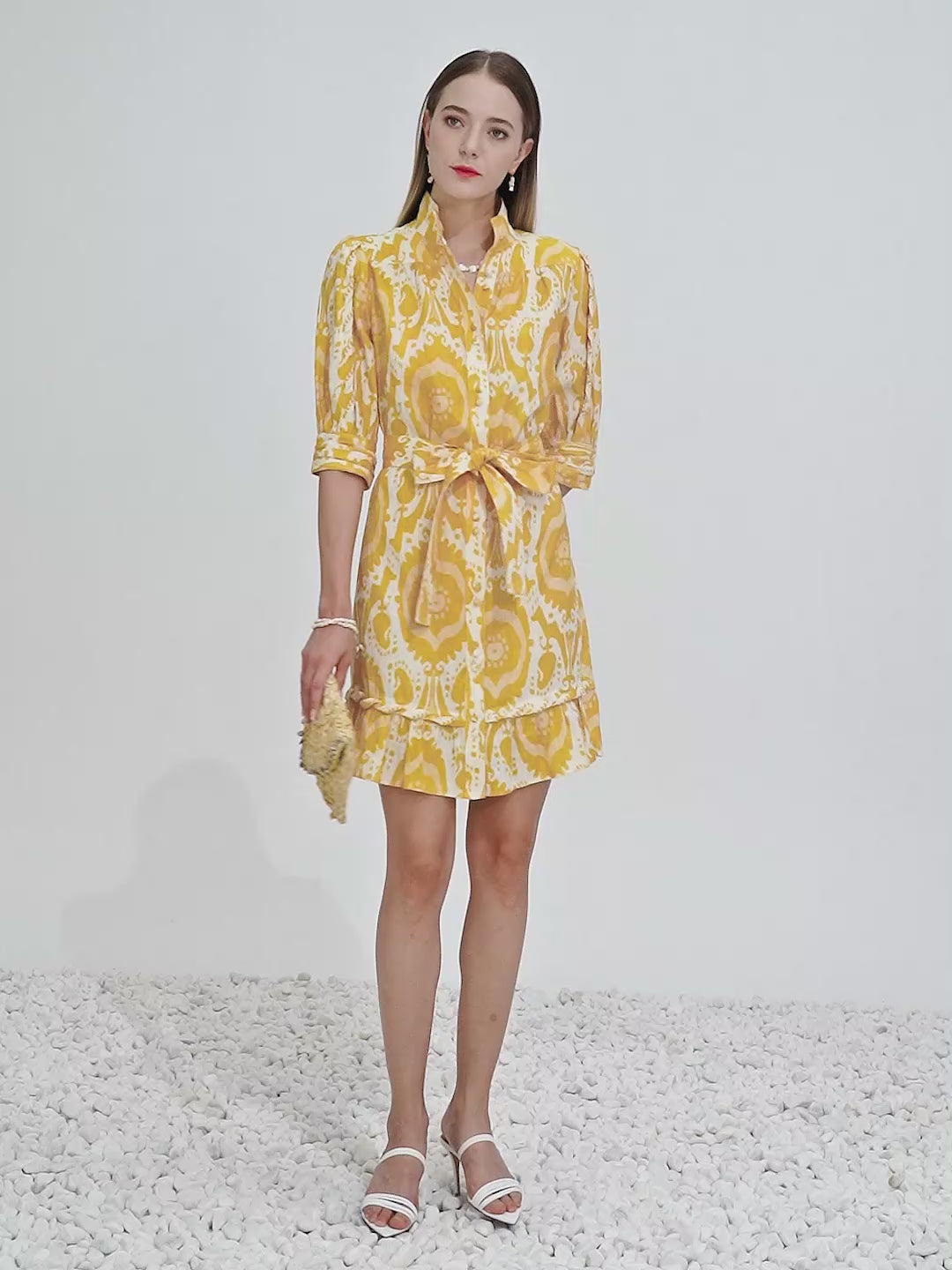From the resort collection, this Abyss Linen Short Dress features a bold statement-making print which lends a photographic aesthetic to this design.