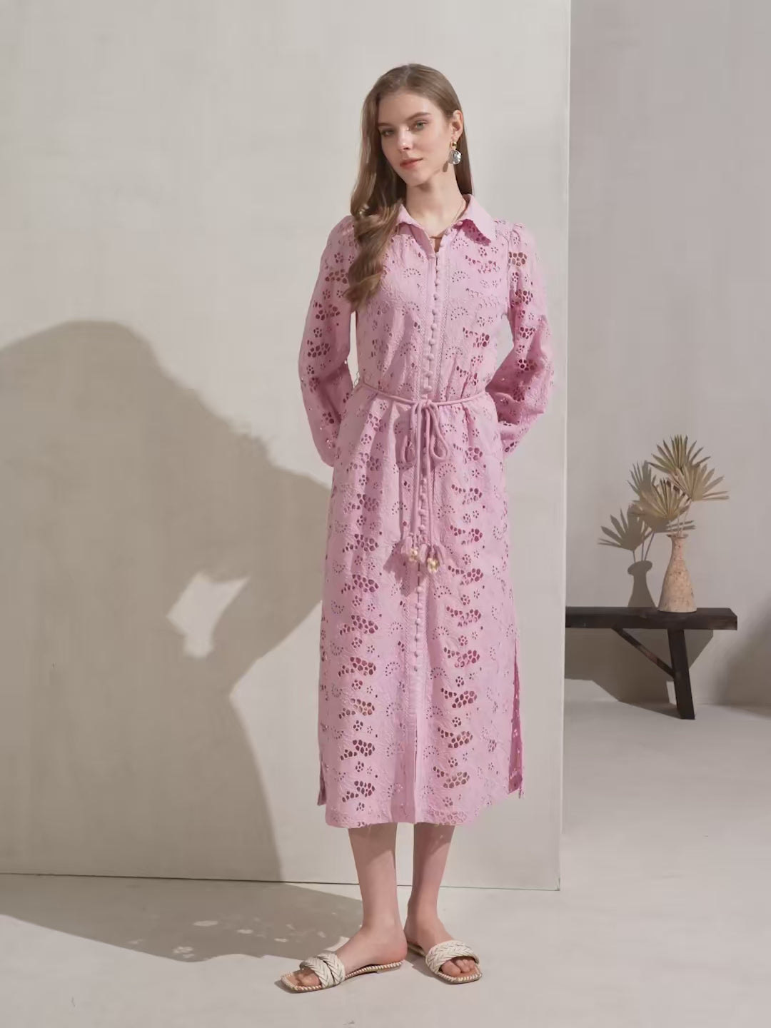 Imagine wearing this elegant dress to a charming outdoor garden party. The long, flowing silhouette and intricate embroidery perfectly complement the natural beauty of a garden setting. Surrounded by blooming flowers and lush greenery, you'll feel effortlessly chic and comfortable. The breathable cotton fabric keeps you cool, while the elegant design ensures you stand out in style.